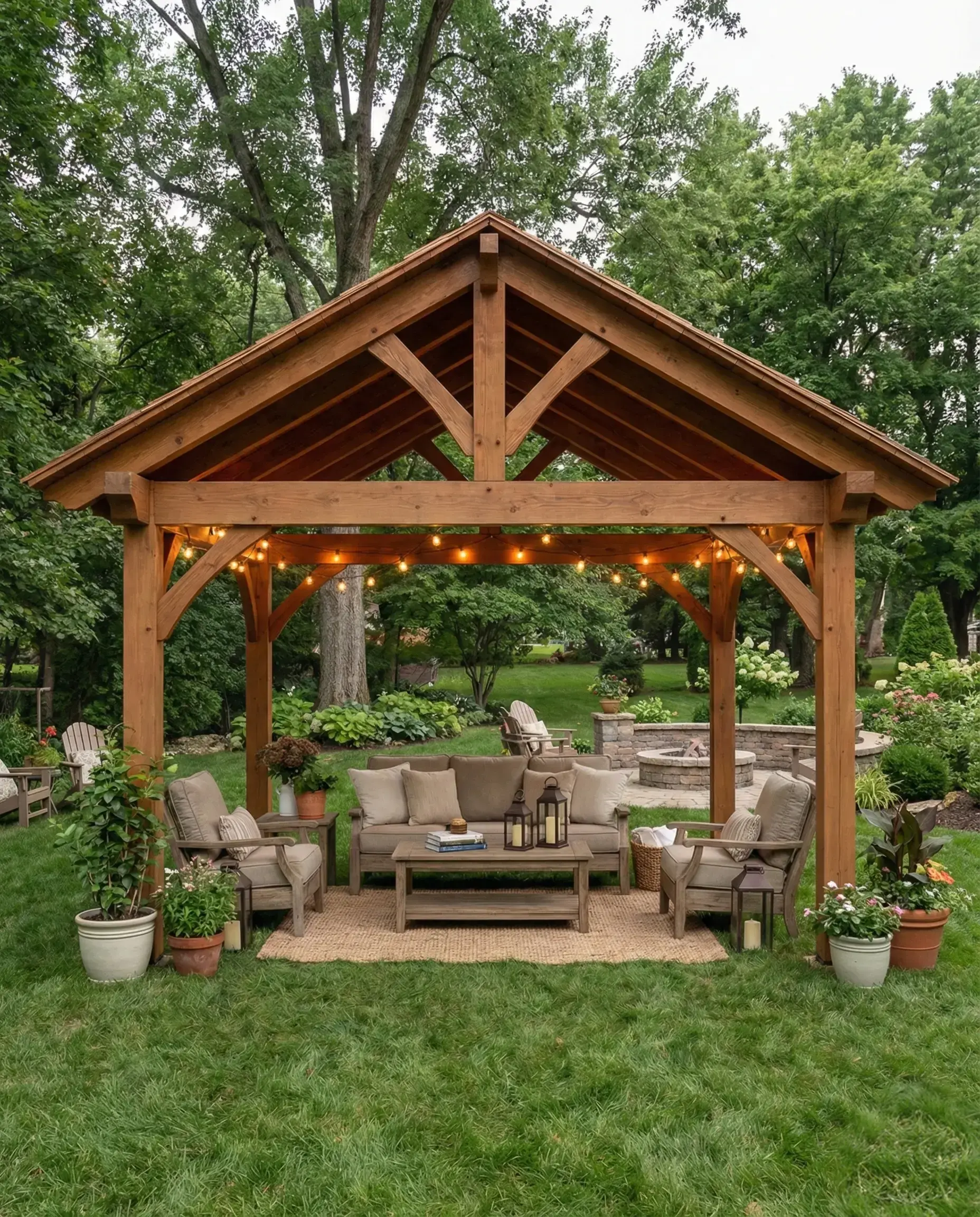 Our timber frame pavilions and pergolas are crafted from high-quality Douglas fir, a premium wood known for its strength, durability, and timeless beauty in outdoor structures.