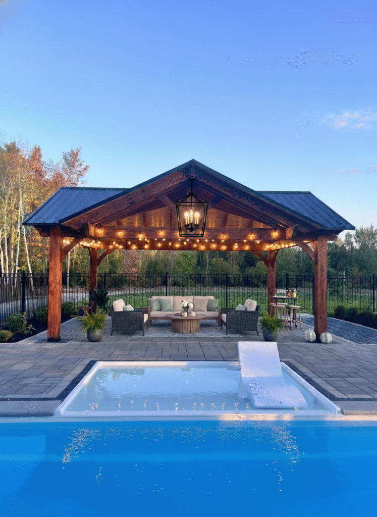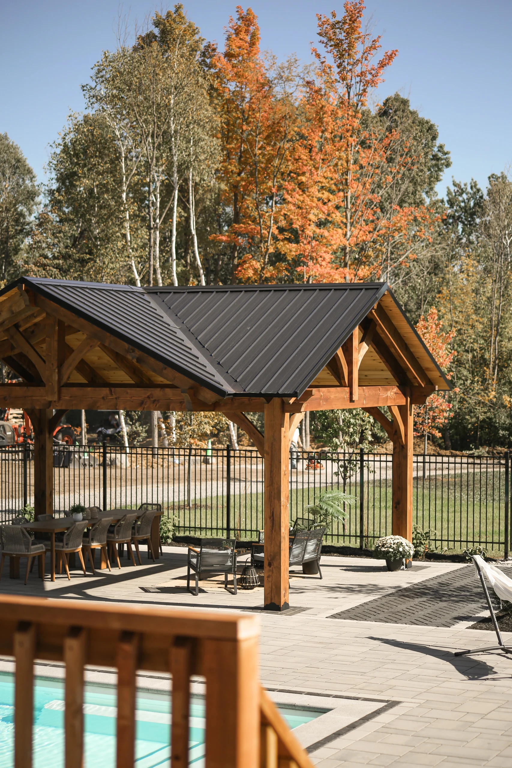 Our timber frame pavilions and pergolas are crafted from high-quality Douglas fir, a premium wood known for its strength, durability, and timeless beauty in outdoor structures.